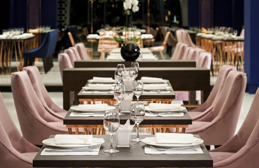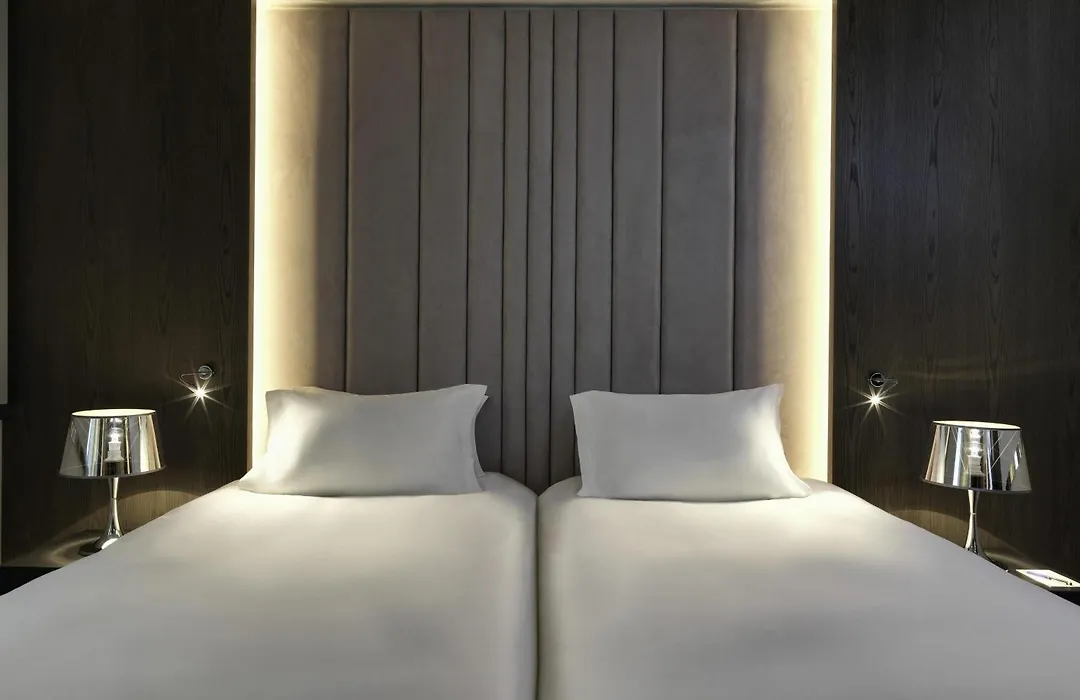 Guests can choose from 345 soundproof rooms and suites, offering luxury amenities like Nespresso machines, marble bathrooms, and high-speed Wi-Fi. The Prestige Suite on the eighth floor features a Jacuzzi bath and living area, while Club Luxury Rooms provide access to a private lounge. All rooms are elegantly designed with contemporary furnishings.