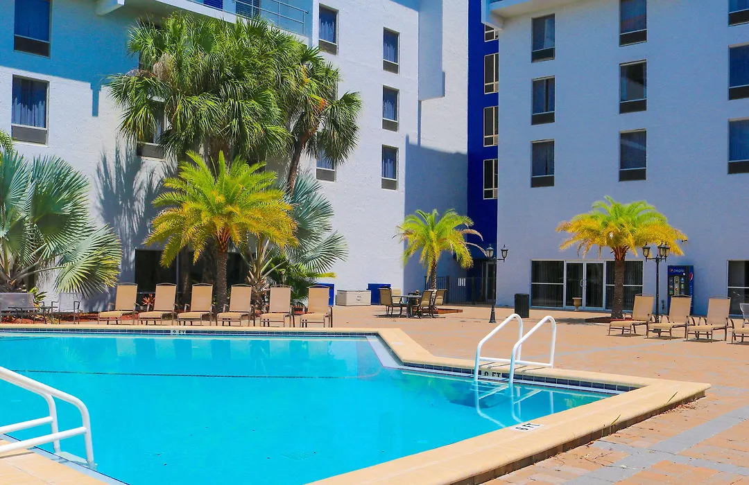 The hotel features a fitness center and outdoor pool for leisure activities. Business guests can utilize 23 meeting rooms totaling 35000 square feet of meeting space. Facilities available include free Wi-Fi throughout the hotel and a 24-hour front desk.