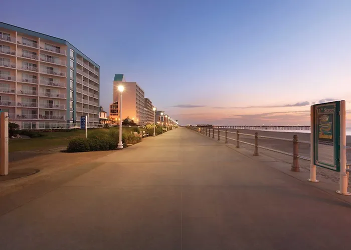 Surfbreak Virginia Beach Oceanfront, An Ascend Collection Hotel offers beachfront accommodations with modern amenities, making it a convenient option for families or groups. This 3-star hotel features direct beach access, an outdoor pool, and an on-site restaurant, the Calypso Bar & Grill, known for locally sourced cuisine.