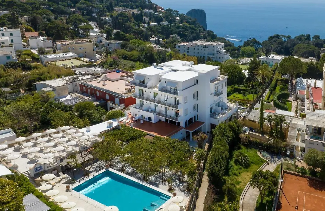 Reachable via bus, taxi, or the funicular railway from the Port of Marina Grande, Hotel Syrene is ideally located just a five-minute walk from the Piazzetta, the island's social center. Local amenities include renowned boutiques and artisanal shops along Via Camerelle, leading to the hotel entrance.