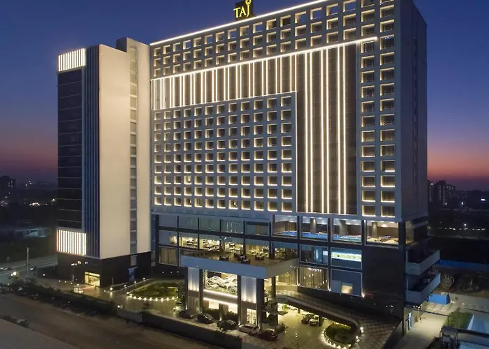 Taj Skyline Ahmedabad, a 5-star hotel with an 8.5/10 rating on Booking.com, features modern amenities including an indoor pool, a fitness center, and a signature J Wellness Circle spa. This high-rise hotel consists of 308 well-appointed rooms and suites, designed with local artistic inspirations.