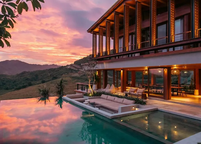 Tampah Hills offers a unique 5-star villa experience with a 9.7/10 rating. This Selong Belanak hotel features stunning views, private chefs, and a sports center with high-class padel and tennis courts.