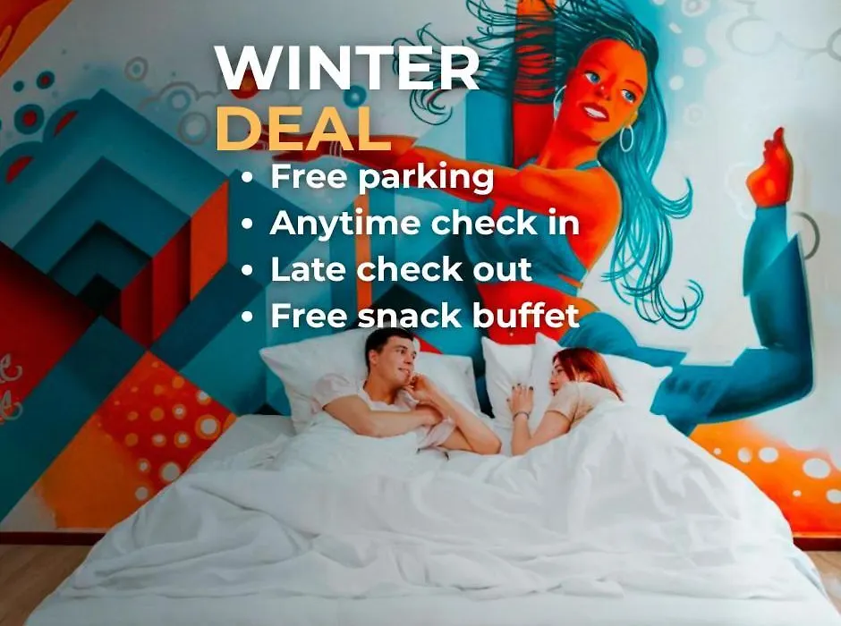 Amsterdam Teleport Hotel, a 3-star accommodation rated 7.6/10 on Booking.com, blends hostel-style environment with hotel comforts. It features communal spaces like a private city beach and art from talented street artists.