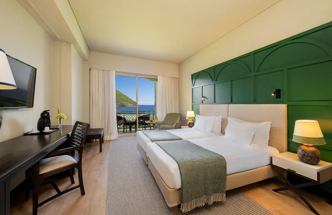 The rooms at Terceira Mar Hotel feature balconies with ocean views. Types include Classic Sea View Rooms, Junior Suites, and Suites, accommodating up to 2 guests. Each room includes modern amenities such as air conditioning, minibars, and free WiFi.