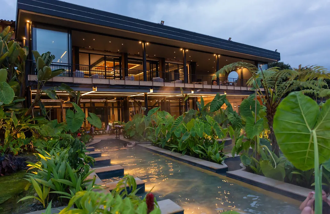 The thermal water pool, with three different temperatures, is ideal for relaxation and wellness therapies. Additionally, guests have access to a spa offering treatments that utilize volcanic stones and essential oils for rejuvenation.