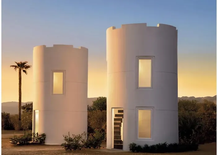 The Castle House Estate, an 8.2/10-rated Joshua Tree hotel, features eight unique accommodations including bungalows and tents with private yards and modern amenities. Highlights include a seasonal outdoor pool and a rooftop terrace for guest use. The property is designed for relaxation, with facilities appealing to nature enthusiasts and those seeking an unconventional stay.