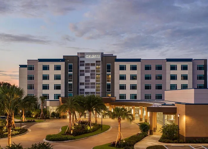 The Celeste Hotel, Orlando, A Tribute Portfolio Hotel, is a 4-star venue located on the University of Central Florida campus, offering a unique space-themed concept with elegant accommodations and first-class hospitality. Amenities include a fitness center, outdoor pool, and complimentary Wi-Fi throughout the property.