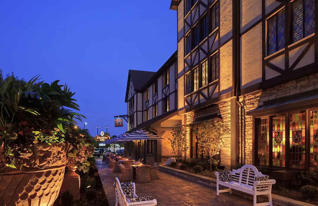 The Cheshire, a 4-star Richmond Heights hotel with a 7.7/10 rating, features Tudor architecture and offers a number of luxury accommodations. On-site amenities include a pool, wellness center, and diverse dining options such as the Fox & Hounds Tavern and Basso restaurant.