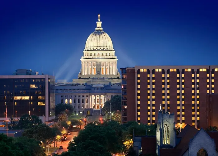 The Madison Concourse Hotel, a 4-star property with a rating of 8.9/10 on Booking.com, offers an extensive range of amenities including a state-of-the-art fitness center, indoor pool, and on-site dining. Located in downtown Madison, this hotel features 373 guest rooms and the exclusive Governor's Club with enhanced services.