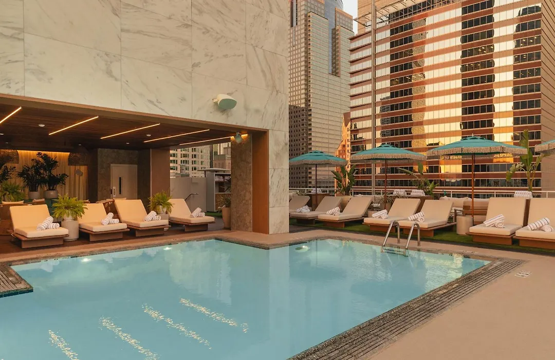 The Delphi Downtown La is a 4-star hotel situated in Los Angeles, renowned for its proximity to art museums and performing arts venues. The hotel features a rooftop pool, an on-site restaurant, and spacious guest accommodations with modern amenities.