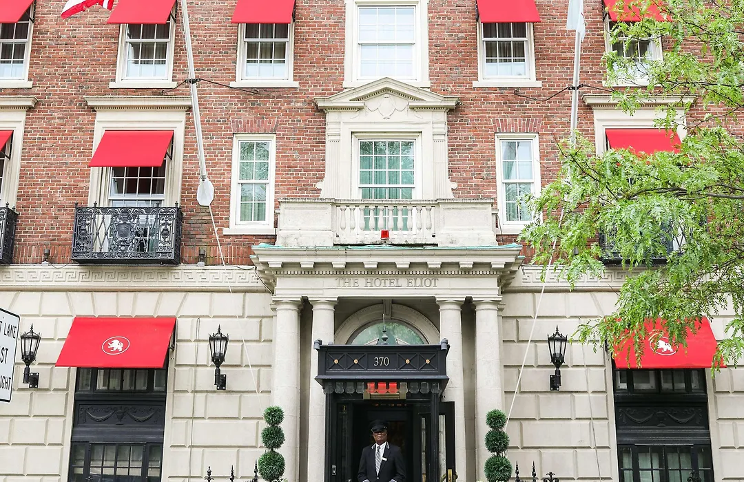 The Eliot Hotel, a 5-star boutique hotel with a 9.1/10 rating on Booking.com, blends Old World elegance with modern comfort in Boston's Back Bay. Guests benefit from personalized service, luxurious rooms, and an award-winning restaurant. The hotel is close to cultural landmarks and offers a variety of amenities.