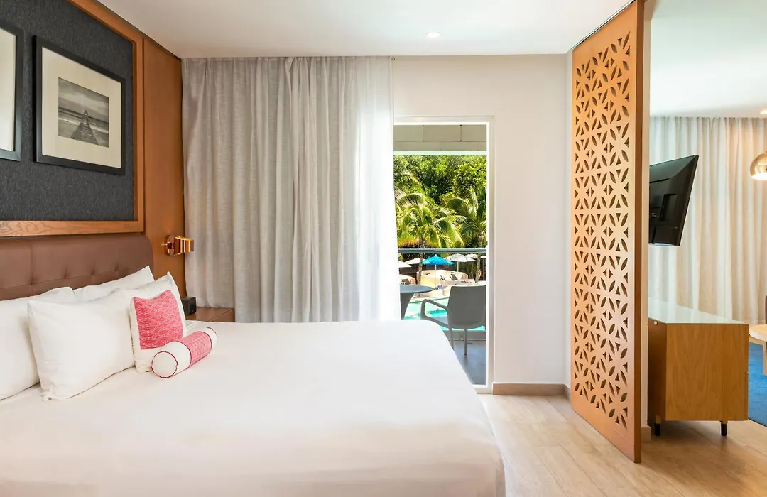 The Fives Beach Hotel & Residences - All Senses Inclusive offers luxurious, family-friendly accommodations featuring spacious one, two, and three-bedroom suites with private lounge terraces. The Playa del Carmen hotel provides direct beach access and access to 14 on-site restaurants, along with various amenities, including an exclusive full-service spa and multiple outdoor pools.