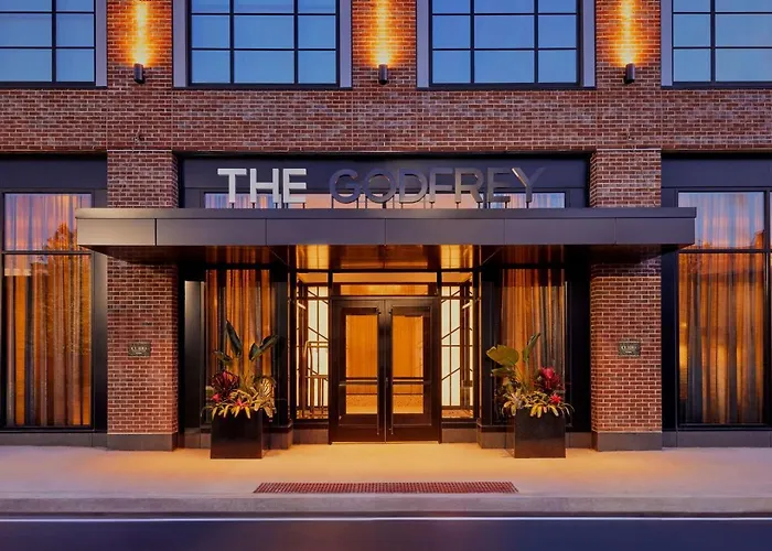 The Godfrey Detroit, Curio Collection by Hilton is a 4-star property offering contemporary amenities in the vibrant Corktown neighborhood. This Detroit hotel features a rooftop lounge with views of the city skyline and an on-site restaurant, Hamilton's, conceptualized by celebrated Detroit restaurateur Samy Eid.