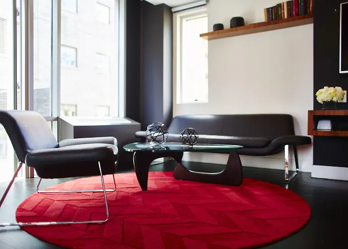 With a score of 8.7/10 on Booking.com, The Gotham Hotel offers 67 apartment-style rooms in Midtown East, featuring modern amenities and unique design. Guests benefit from an on-site restaurant and easy access to major attractions such as Bryant Park and the bright lights of Broadway.