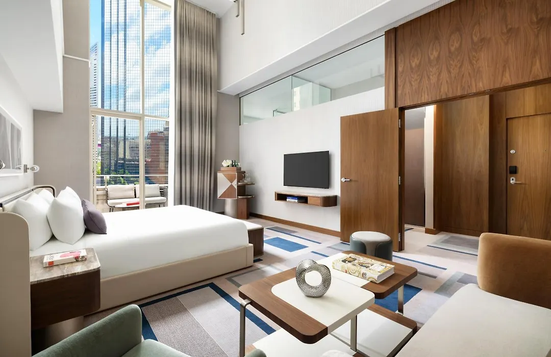 Dining options at The Joule include the Italian eatery Americano, known for housemade pasta and Neapolitan pizza, and the Texas Brasserie, a local favorite. Guests can also unwind at the Lobby Bar or the rooftop pool bar, offering scenic city views.
