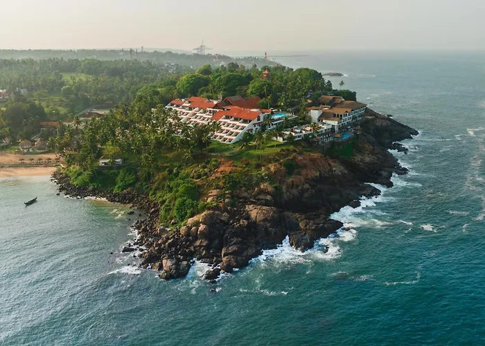The Leela Kovalam, A Raviz Hotel, a 5-star retreat with an 8.9/10 rating on Booking.com, features three infinity pools, lush gardens, and direct beach access. Guests can enjoy luxurious accommodations with personalized Butler service and a range of dining options, including regional and international cuisines.