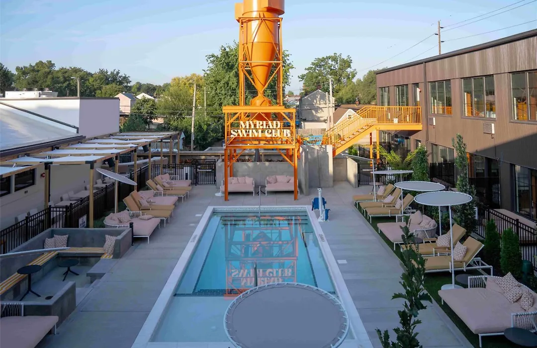 Dining options include the elevated restaurant Paseo, which serves wood fire cuisine, and the Switchboard bar and lounge for all-day coffee and cocktails. Guests can also enjoy poolside dining at the Myriad Swim Club.