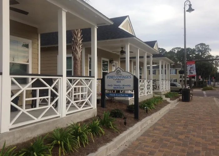 The Port Inn And Cottages, An Ascend Collection Hotel is a boutique hotel in Port St. Joe featuring modern accommodations with historic charm. Guests can enjoy a seasonal outdoor pool and pet-friendly cottages that sleep up to six. The hotel has an 8.7/10 rating on Booking.com.