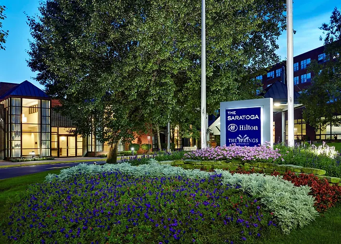 The Saratoga Hilton, a 3-star Saratoga Springs hotel with an 8.3/10 Booking.com rating, offers modern accommodations and convenient amenities such as an indoor pool and 24-hour front desk service. Guests can enjoy on-site dining at The Springs restaurant, which serves American-inspired cuisine.