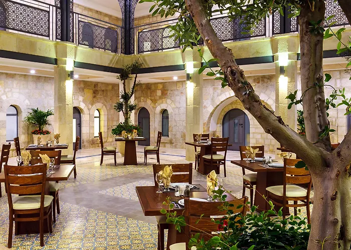 For transportation, the hotel is within walking distance to several bus stations including Western Wall and Jaffa Gate, providing access to various locations in the area. The nearest airport is Ben Gurion Airport, located 34.2 miles away. This positioning allows guests to explore a range of historical landmarks within walking distance.