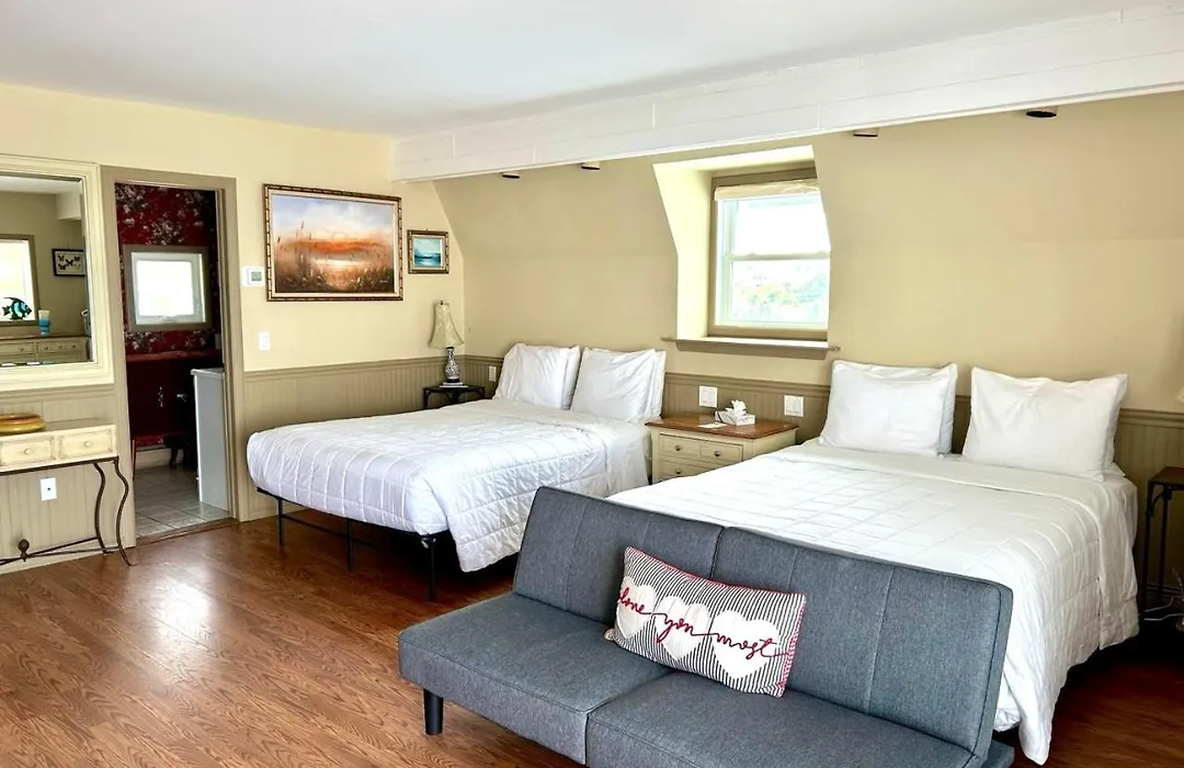 Accommodations at The Montauk Soundview include Two Bedroom Waterfront Apartments and One Bedroom Suites, each featuring a full kitchen and living area. The unique layouts provide direct waterfront access and stunning sunset views from private decks, making them ideal for families and groups.