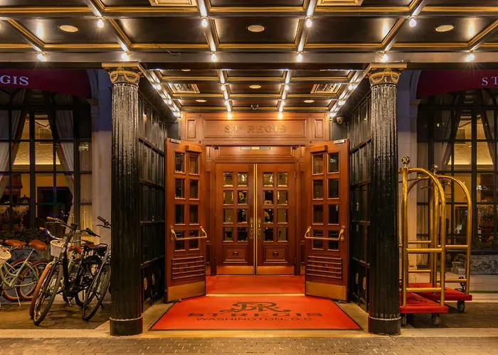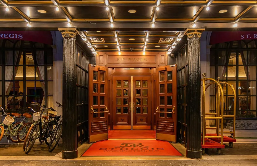 The St. Regis Washington, D.C. is a luxurious 5-star hotel featuring a grand lobby with ornate Florentine gold ceilings and top-tier dining options. Notable amenities include the St. Regis Butler Service and a 24-hour fitness center. This historic luxury hotel is within walking distance to prominent attractions such as the White House and the National Mall.
