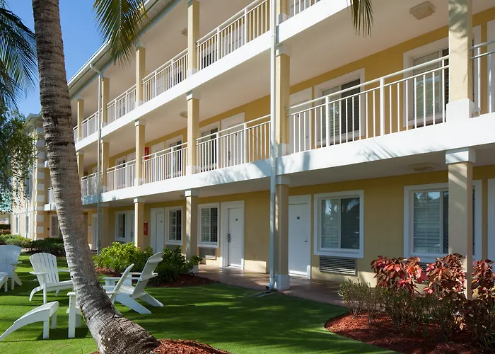 Sunshine Suites Resort offers affordable boutique lodging with 4-star accommodations and a 7.4/10 rating on Booking.com. The resort features unique amenities for families, including access to nearby Seven Mile Beach. Guests can enjoy high-speed wireless internet and the award-winning Sunshine Grill on-site.