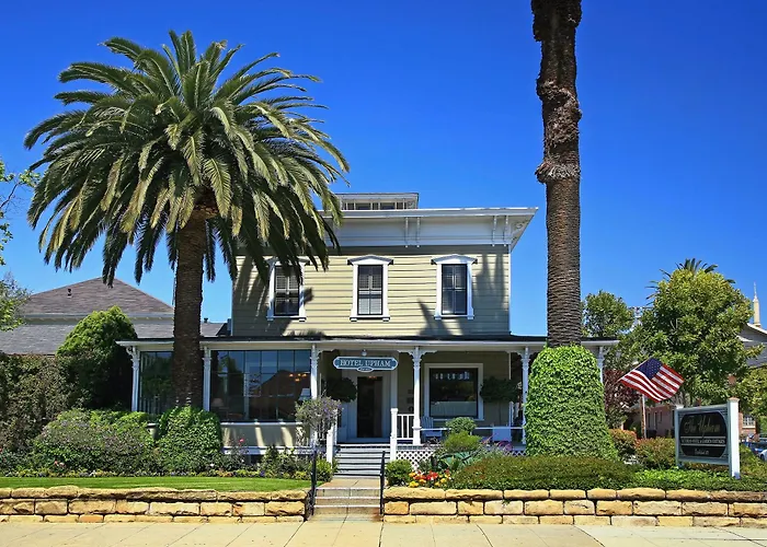 The Upham Hotel is a 3-star boutique hotel with an 8.5/10 rating, offering comfortably appointed rooms and charming gardens. Guests enjoy modern amenities while immersed in historic charm in downtown Santa Barbara.