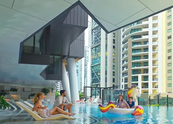 The Westin Brisbane, a 5-star hotel with an 8.5/10 booking rating, offers luxurious amenities including Brisbane's only swim-up pool bar and the Heavenly Spa by Westin. This contemporary hotel in the city center features a range of accommodations and exceptional dining options.