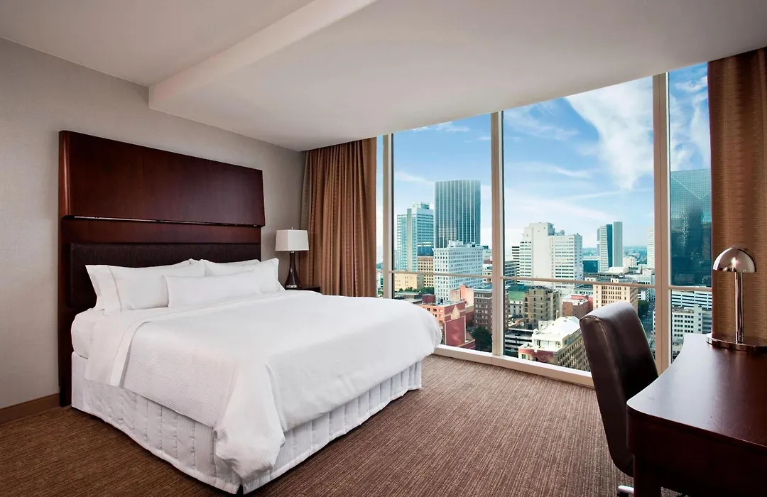 Rooms at The Westin Peachtree Plaza include 1073 individually furnished spaces featuring comfort amenities such as Westin Heavenly(R) Beds, air conditioning, and premium bedding. Many rooms offer floor-to-ceiling windows, allowing breathtaking views of downtown Atlanta.