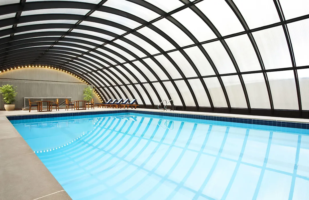 The Westin Peachtree Plaza features a modestly sized rooftop pool housed under a retractable domed glass ceiling. Guests can utilize the Westin Workout Fitness Studio, which is accessible 24/7, ensuring an opportunity to maintain their fitness routine.