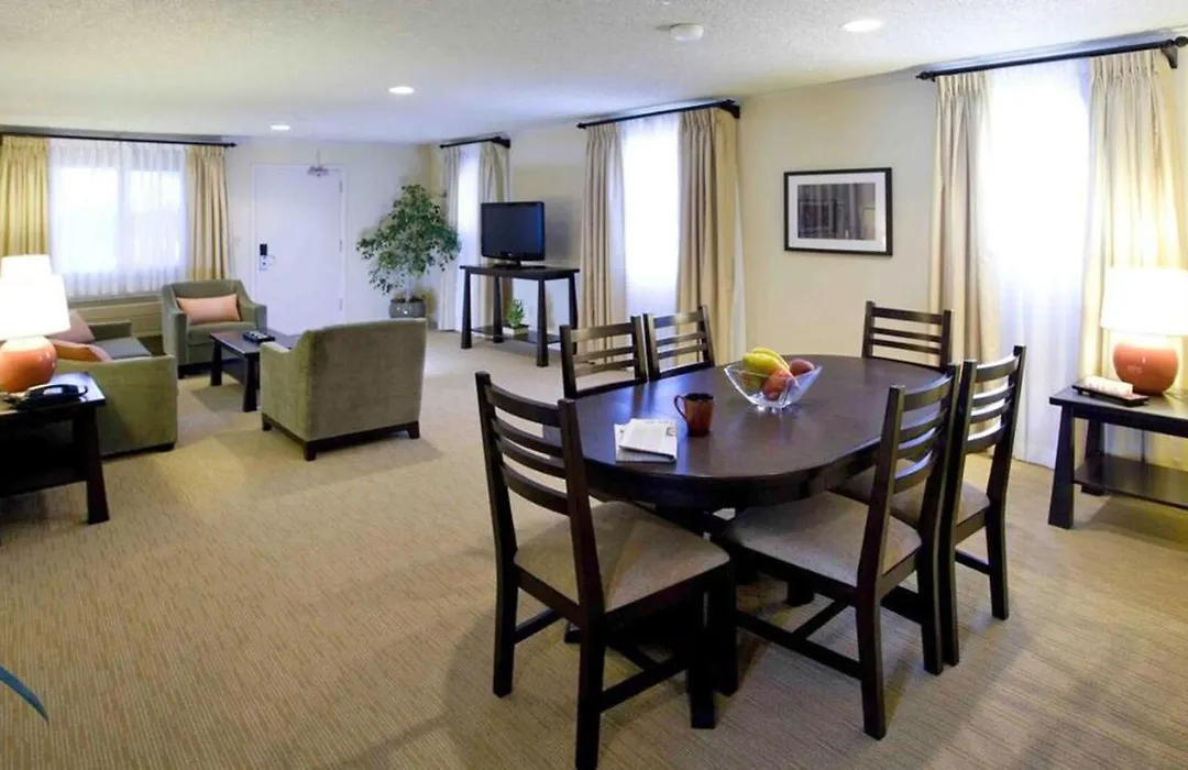 A complimentary full breakfast is served daily from 6:30 AM. Nearby dining options include Starbucks, So Gong Dong Tofu House, Fuki Sushi, and Baja Fresh, all within a 0.5 miles radius.