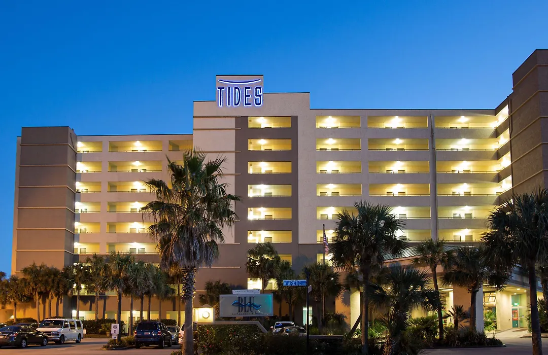 Tides Folly Beach, Charleston's Oceanfront Hotel, is a 3-star beachfront hotel offering unrivaled ocean views and direct beach access. The hotel includes amenities such as an outdoor heated pool, on-site dining, and pet-friendly options.