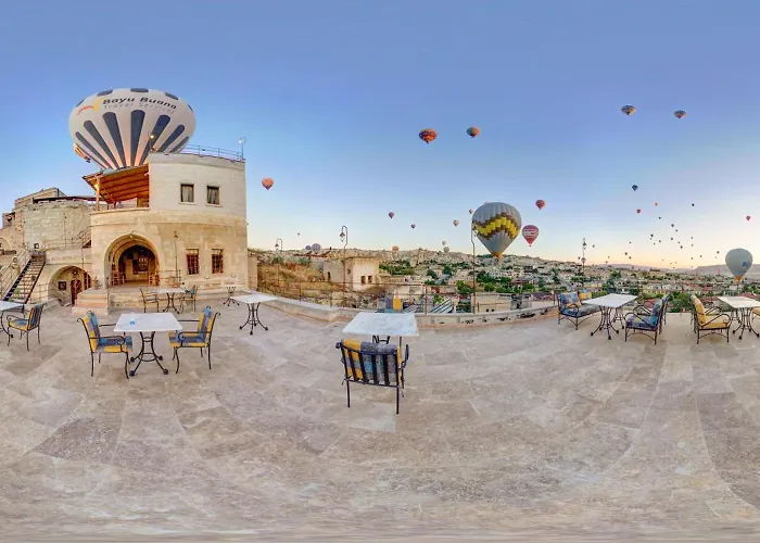 Travel Inn Cave Hotel, a 2-star Göreme hotel with a rating of 8.7/10 on Booking.com, features a restaurant, bar, and terraces with panoramic views of the Cappadocia valleys. Guests can enjoy a free breakfast buffet and complimentary Wi-Fi.