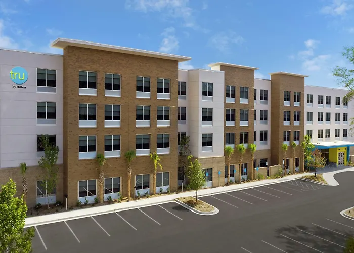 Tru By Hilton Mt Pleasant Charleston is a pet-friendly hotel offering modern accommodations with a rating of 8.8/10 on Booking.com. Guests can enjoy amenities such as a complimentary buffet breakfast and an outdoor pool.