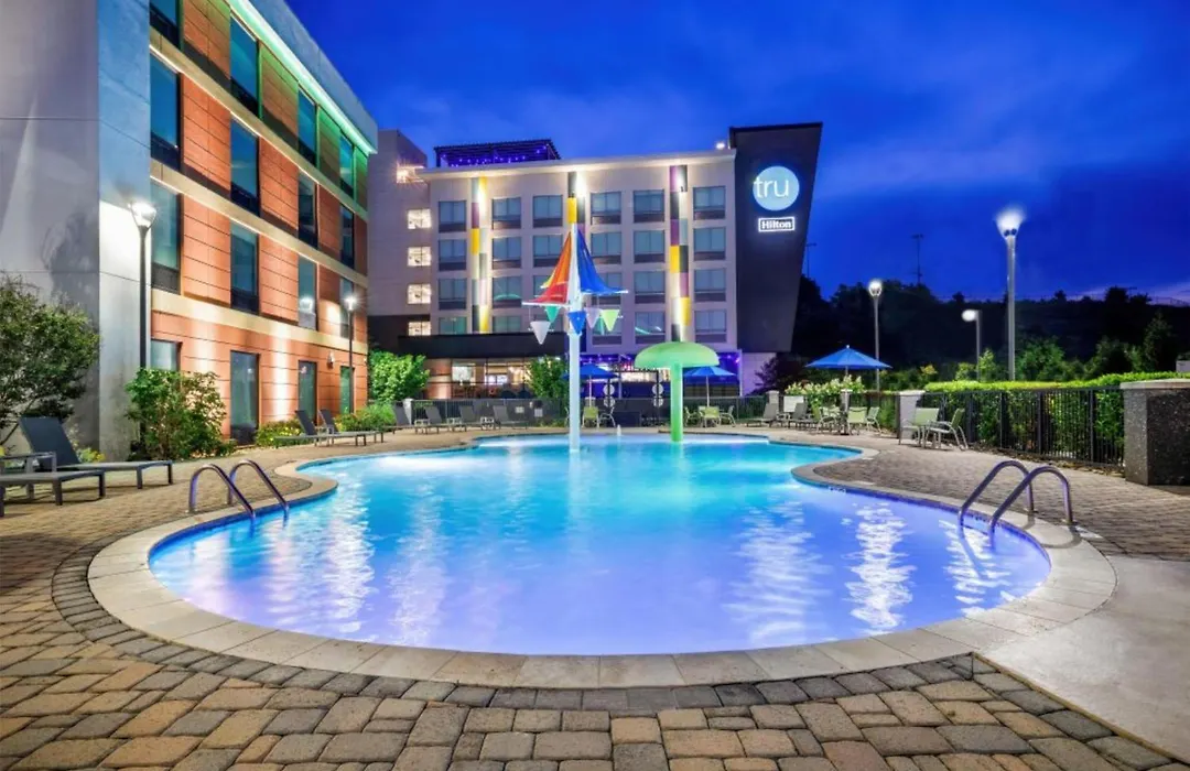 Tru By Hilton Pigeon Forge offers a modern stay with key amenities such as free Wi-Fi, fitness center, indoor and outdoor pools. This 3-star hotel caters to families and is situated close to local attractions like Dolly Parton's Stampede.