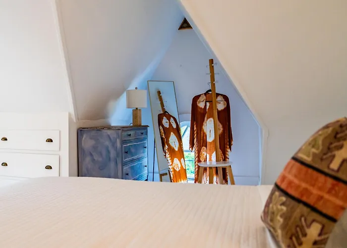 Twin Gables Of Woodstock, a 2-star hotel with a 9.4/10 rating on Booking.com, features historic charm with contemporary design elements. The hotel offers a complimentary continental breakfast and a 24-hour complimentary tea and coffee bar. Guests can enjoy curated local art throughout the property.