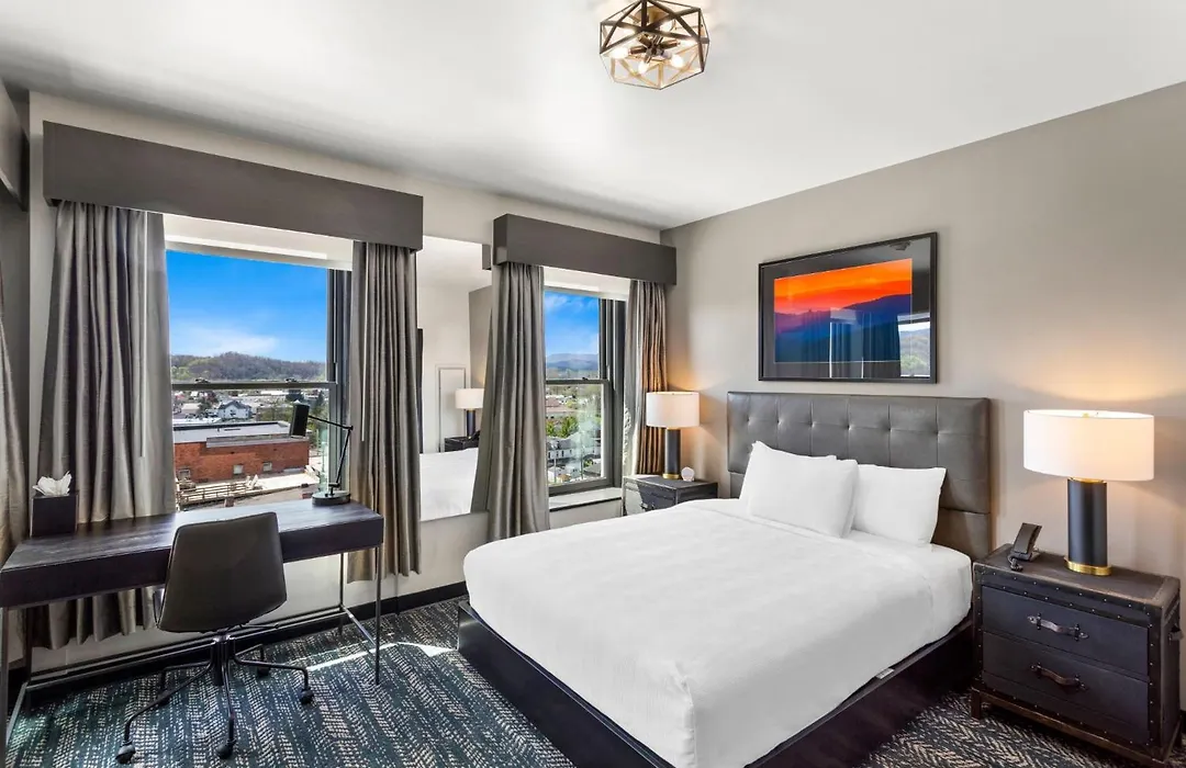 Guest accommodations at Tygart Hotel include king, double queen, and spacious king suites. Each room features a flat-screen TV, complimentary Wi-Fi, and en-suite bathrooms with walk-in showers.