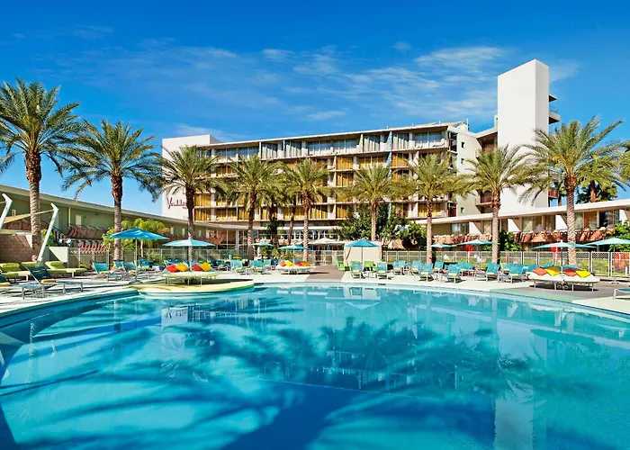 Hotel Valley Ho is a 4-star Scottsdale hotel rated at 9.2/10 on Booking.com. It features mid-century modern architecture, vibrant amenities, and a full-service spa. Guests can enjoy an outdoor pool area and a range of culinary options.