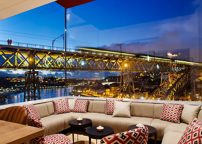 Vincci Ponte de Ferro, a 4-star Vila Nova de Gaia hotel with a 9.4/10 rating on Booking.com, features modern amenities including a seasonal outdoor swimming pool, fitness center, and adequate meeting facilities. The hotel comprises several buildings, offering panoramic views over the Douro River and the iconic Porto skyline.