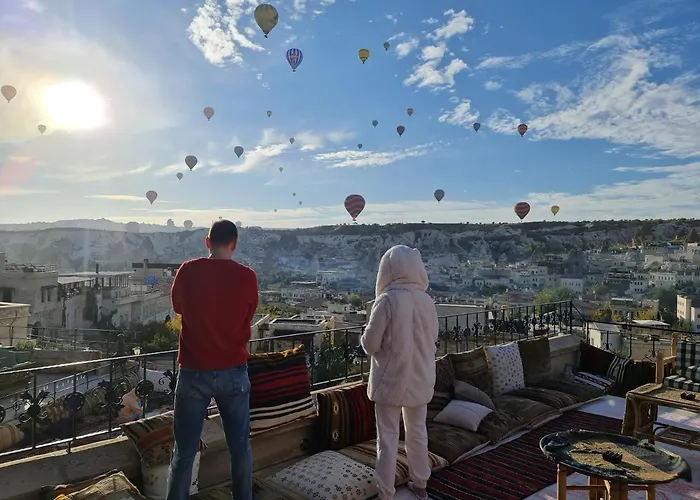 Vineyard Cave Hotel offers a unique stay among Göreme's fairy chimneys with a 9.5/10 rating on Booking.com. This 2-star Göreme hotel features free WiFi, a rooftop terrace, and a restaurant serving traditional cuisine upon request. Guests will enjoy free buffet breakfast and complimentary self-parking.