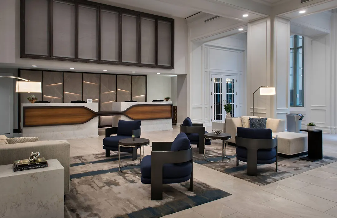 Norfolk Waterside Marriott offers extensive meeting space of 60000 square feet, suitable for events and conferences. The hotel is conveniently connected to public transport options, including the nearby MacArthur Square city train station, facilitating easy access to the local area.