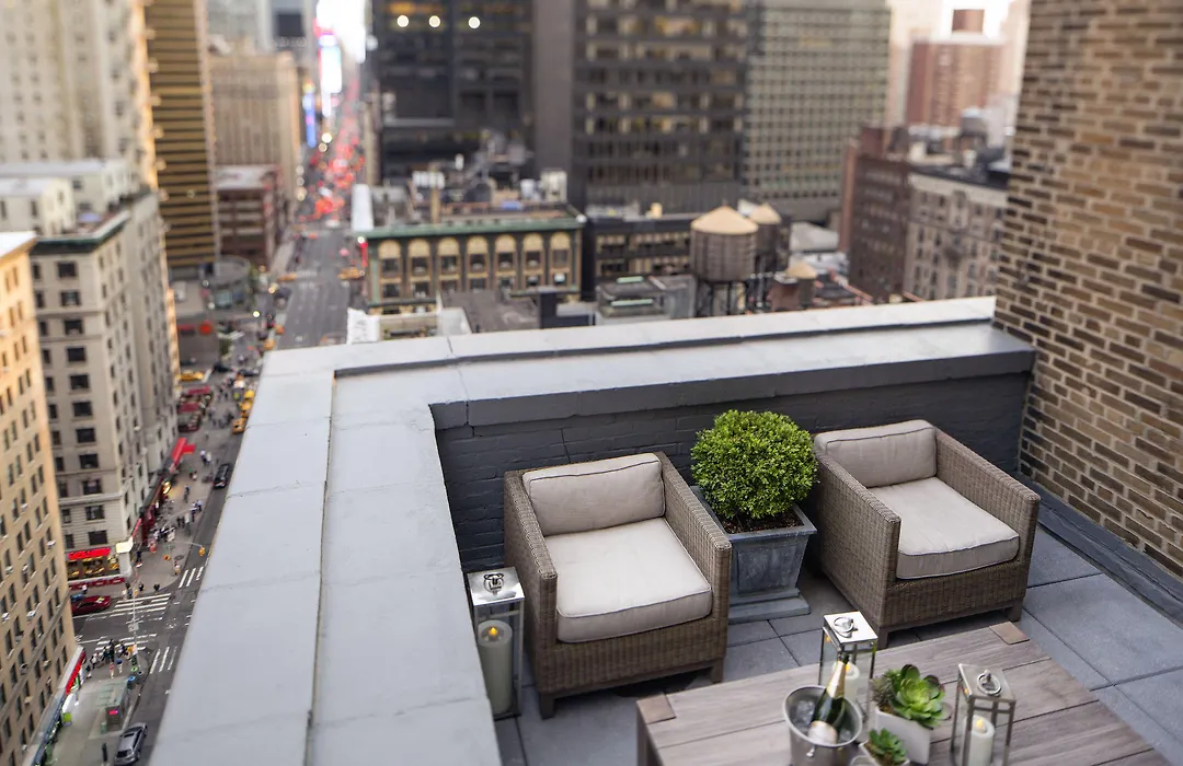 Westhouse Hotel New York, a luxurious 5-star accommodation, combines the comforts of an elegant Uptown apartment with boutique hotel amenities. Guests enjoy access to a 24-hour fitness center, a lounge bar with premium beverages, and evening light fare services. The hotel's unique offering includes daily breakfast and a terrace to relax while taking in views of the city.