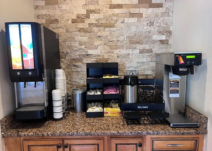 Free deluxe continental breakfast is provided daily. Nearby dining options include Urban Steak, located 0.5 miles away, and McDonald's, only 0.5 miles from the hotel.