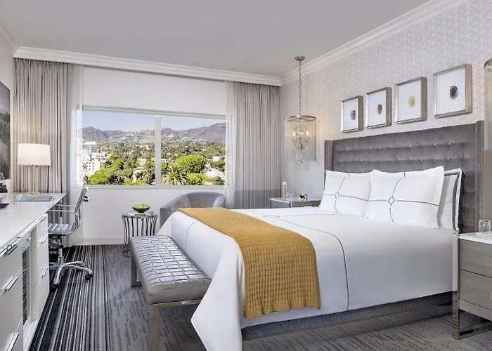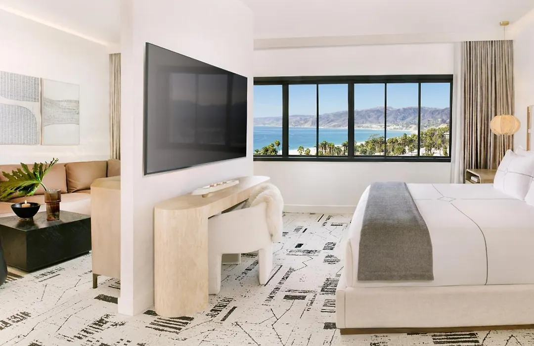 Huntley Santa Monica Beach offers elegantly designed accommodations featuring natural light, smart room controls, and luxurious Bvlgari bath products. Guest rooms primarily include ocean and city views, with notable options such as the Presidential Suite and Malibu Suites, each equipped with modern amenities for relaxation.
