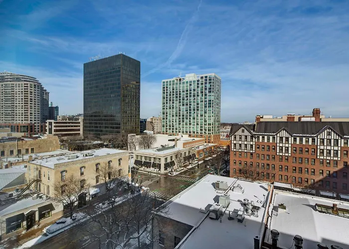 Leisure facilities at this hotel include an outdoor grilling patio and proximity to local attractions such as the Lincoln Park Zoo, only a short drive away. The outdoor patio overlooks Chicago Ave, providing a space for relaxation and social gatherings.