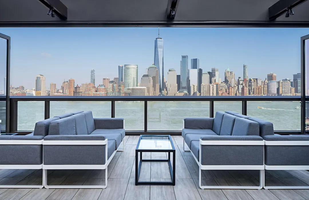 Hyatt House Jersey City, a 4-star hotel with an 8.4/10 rating on Booking.com, features thoughtful amenities and a rooftop lounge overlooking the Hudson River and New York City skyline. The hotel offers a 24-hour business center, free WiFi, and facilities suitable for both leisure and business travelers.