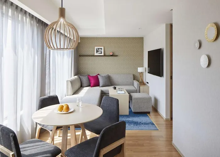 Hyatt House Kanazawa, a 5-star hotel with a 9.3/10 rating, provides modern accommodations with amenities such as a fitness center, garden, and a shared lounge. Guests enjoy complimentary breakfast and convenient features including free Wi-Fi and on-site shopping.