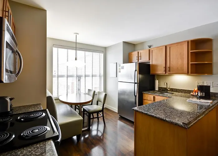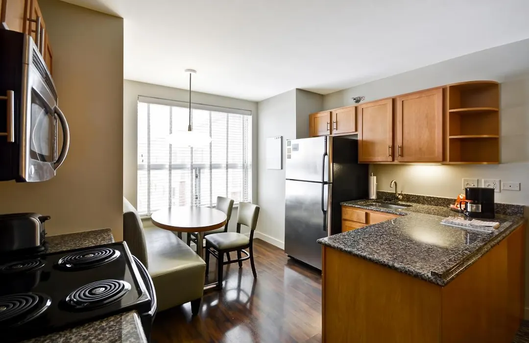 Hyatt House Naperville/Warrenville features spacious suites and a modern design, rated 8.5/10 on Booking.com. This 3-star hotel includes an indoor pool and fitness center, and offers a complimentary breakfast buffet with made-to-order options.