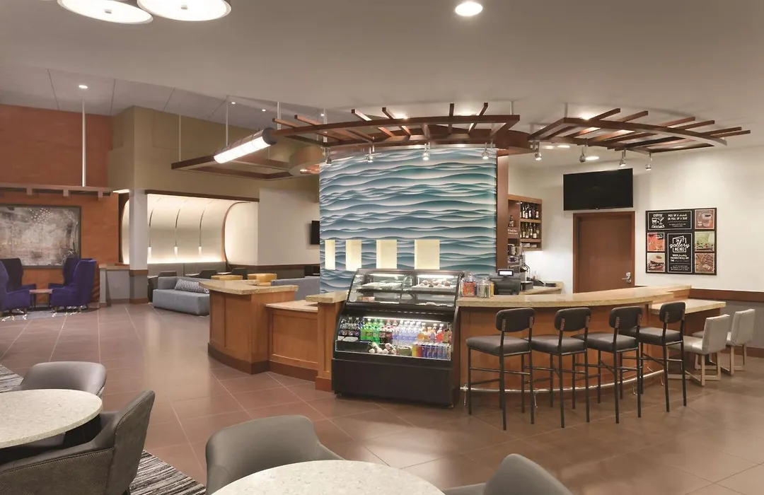 Dining options include The H Bar, serving 24-hour menu items, baked goods, and specialty coffee drinks. The Kitchen Skillet provides a free breakfast, featuring a rotation of breakfast sandwiches and hot meals.